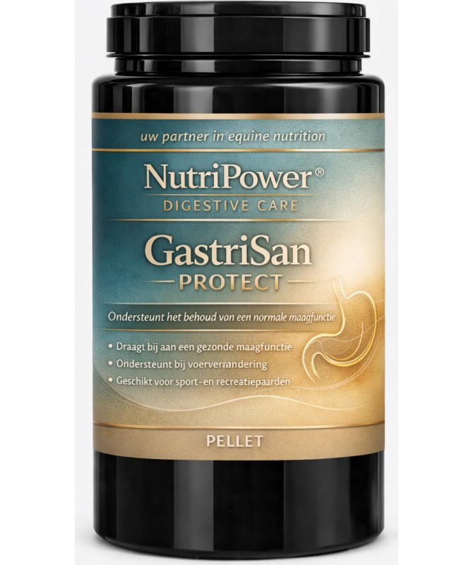 NutriPower® GastriSan Protect Pellets is een aanvullend diervoeder voor paarden, ontwikkeld ter ondersteuning van een normale maagfunctie en het behoud van een gezonde maagwand, met name bij paarden die gevoelig zijn voor stress, verandering in management of intensieve training.