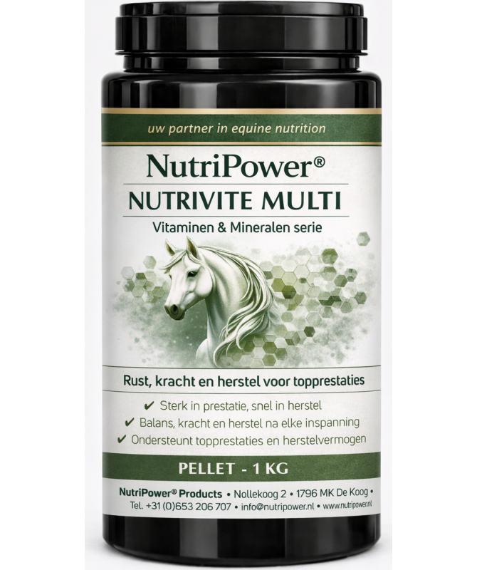 NutriVite is ontwikkeld voor paarden in training en competitie. Voor gebruik binnen specifieke wedstrijdreglementen blijft de gebruiker verantwoordelijk voor naleving van actuele regelgeving.