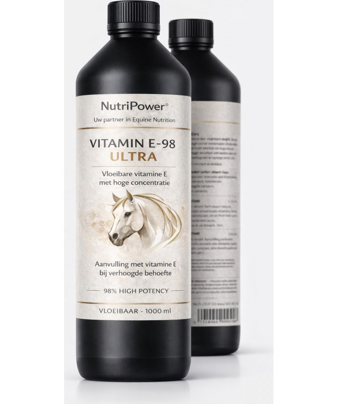 NutriPower® Vitamine E Ultra High Potency 98% vloeibaar is een hoog geconcentreerd aanvullend diervoeder voor paarden in een goed opneembare vloeibare vorm.